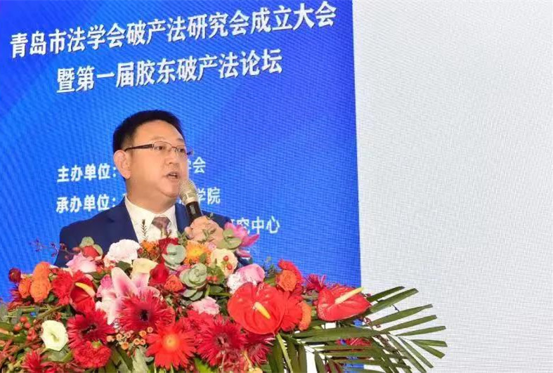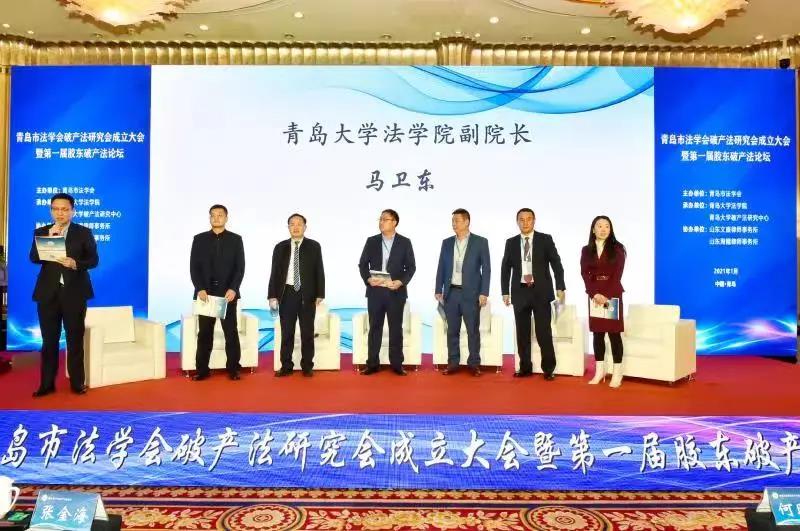 青岛市法学会专职副会长白雪青主持了开幕式,青岛大学党委常委、副校长肖江南,山东省法学会专职副会长兼秘书长任伟,青岛市委政法委常务副书记、市法学会党组书记陈金国,青岛市中级人民法院党组成员、副院长、青岛破产法庭庭长高勇出席会议并致辞。大会选举产生第一届理事会成员,青岛大学特聘教授、青岛大学破产法研究中心主任丁燕当选青岛市法学会破产法研究会会长。研究会聘任北京市破产法学会会长、中国人民大学法学院教授王欣新为名誉会长,聘任多名国内著名破产法学者、行业专家为学术委员会委员和特邀顾问。山东颐衡律师事务所兼职律师、青岛大学法学院副院长马卫东教授当选为青岛市法学会破产法研究会副会长,山东颐衡律师事务所党支部书记、主任赵纯永当选为青岛市法学会破产法研究会常务理事。