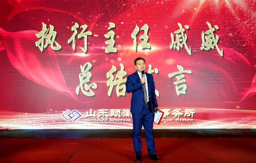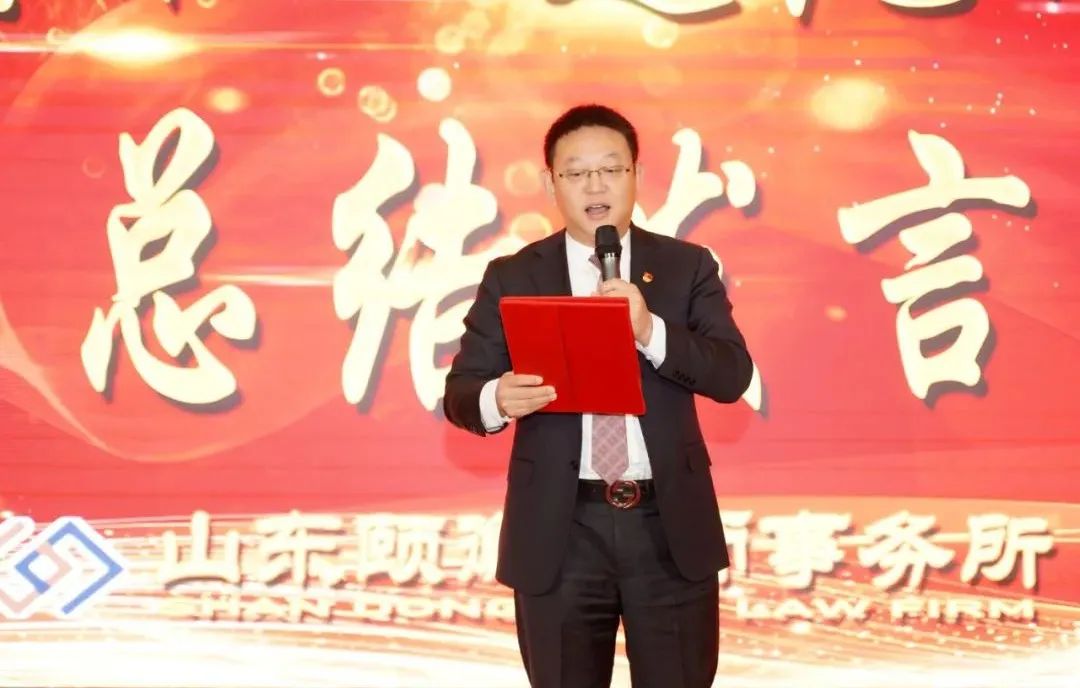 赵纯永主任用激昂的声音进行了总结发言:首先赵主任表示,2021年山东颐衡律师事务所在青岛市司法局和青岛律师协会的正确领导下,在广大客户的信任和支持下,在全体律师的不懈努力下,以党建为引领,始终贯彻“尚法、精业、合作”的执业理念,克服疫情影响,律所各项工作取得持续、健康、稳定、高质量发展。值此新年之际,谨代表颐衡所向全体努力进取和勤奋工作的颐衡家人们致以诚挚的问候和衷心的感谢。