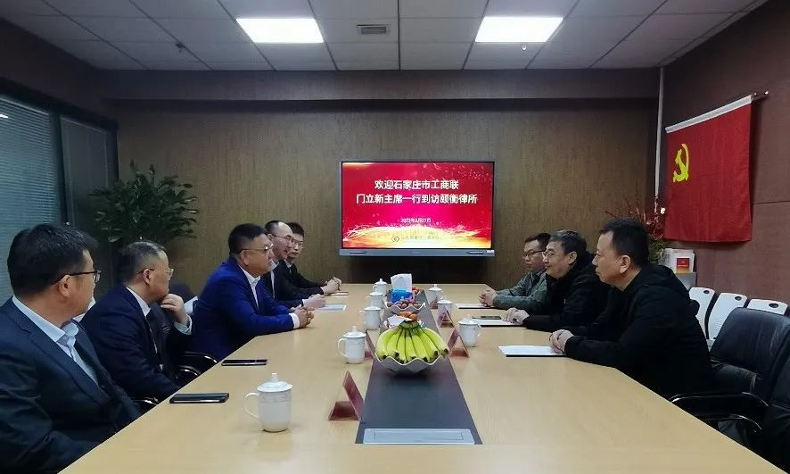 2023年3月27日上午,石家庄市工商联常务副主席门立新,石家庄市工商联办公室主任许奉华,石家庄市工商联办公室副主任刘学恭莅临颐衡律所座谈交流,山东颐衡律师事务所党支部书记、主任赵纯永,商事诉讼与仲裁业务部主任、山东省河北商会副会长杨少平律师,医疗健康业务部主任、河北籍正团转业军人王津章律师,环境资源与能源法律事务部主任、河北籍正团转业军人白永明律师 ,中佳勘察设计有限公司青岛分公司总经理、工商联市商会首席政策官范文鹤,参与座谈交流。