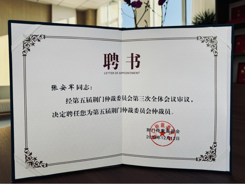 颐衡官宣 | 祝贺山东颐衡(潍坊)律师事务所主任张安军律师受聘为第五届荆门仲裁委员会仲裁员
