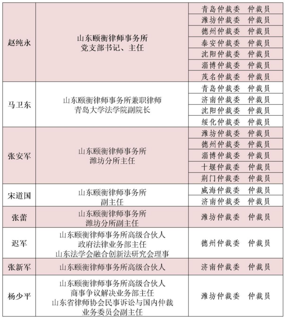 目前,山东颐衡律师事务所已有多名律师在不同仲裁机构获聘仲裁员,他们分别是: