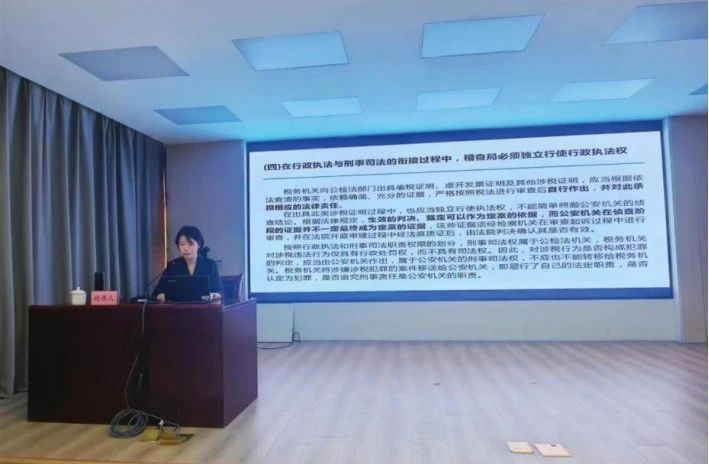 袁欣律师宣讲的题目为《税收风险的识别与防范》,将“税收”与《民法典》相结合,详细阐述了税务执法中可能遇到的问题和风险。讲座以案说法,围绕税收风险特点、未采取税收保全措施和强制执行措施的执法风险、涉税涉嫌犯罪案件移送的执法风险以及具体行政行为的合法性审查等方面逐一讲解,现场互动频繁、气氛热烈。