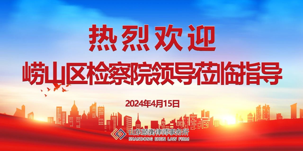 2024年4月15日下午,崂山区人民检察院副检察长吴志坚一行莅临山东颐衡律师事务所,四级高级检察官焦文泽、王哥庄检察室主任李文秀、第二检察部副主任刘迪陪同。山东颐衡律师事务所党支部书记、主任赵纯永,执行主任戚威、律师谭咏华参加接待并座谈。