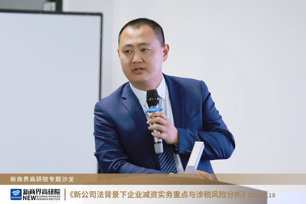 新商界高研院特聘讲师、山东大学工商管理硕士、多家集团公司的财税和法律顾问,山东颐衡律师事务所专职律师于松就"新《公司法》减资规定,减资的定义与规定、目的与分类,减资的流程与注意事项,以及减资的涉税处理"等内容做了专题分享。
