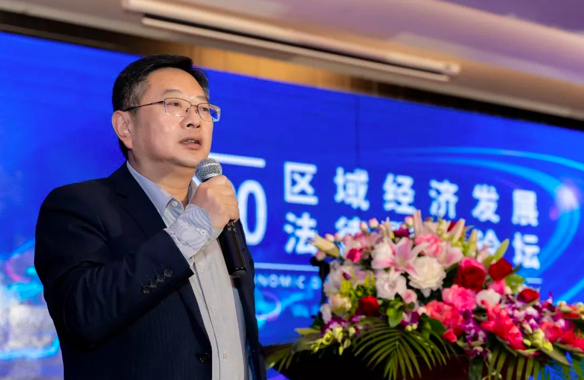 山东省法学会副会长、党内法规研究会会长、宪法学研究会会长、山东大学法学院(威海)院长、教授肖金明通过视频连线的方式发表了主旨演讲:《律所如何服务区域经济发展》。