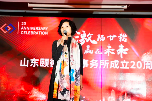 庆典仪式上,赵纯永主任首先发表了题为“激扬廿载,赢在未来”的主题致辞,他表示山东颐衡律师事务所立足山东本土,辐射全省至全国,目前已设立济南、青岛、潍坊、威海四家执业机构,人员规模达到一百余人,逐步发展成为一个可以为社会提供综合性法律服务的区域性大型律师事务所。每一位颐衡人以孜孜不倦、专于事业的恒心,敢于创新、开拓进取的决心,勇于担当、甘于奉献的热心,汇聚成了颐衡所前行的力量。他表示今年是颐衡成立二十周年,也是颐衡未来新的元年,颐衡将放眼未来,战略布局。在未来的岁月里,我们将打造山东颐衡应用法学研究院,促进法学研究理论与法律业务实践的进一步融合,通过司法实践反哺学术研究,通过学术成果指导法律实务,形成良性循环互动。下一步颐衡将重磅打造律师事务所的市场推广部,打造专业的市场宣传、市场推广团队,致力于品牌建设与维护、市场开拓与发展,形成一体两翼的发展模式,立足本土,走出山东,面向全国,实现新的腾飞。