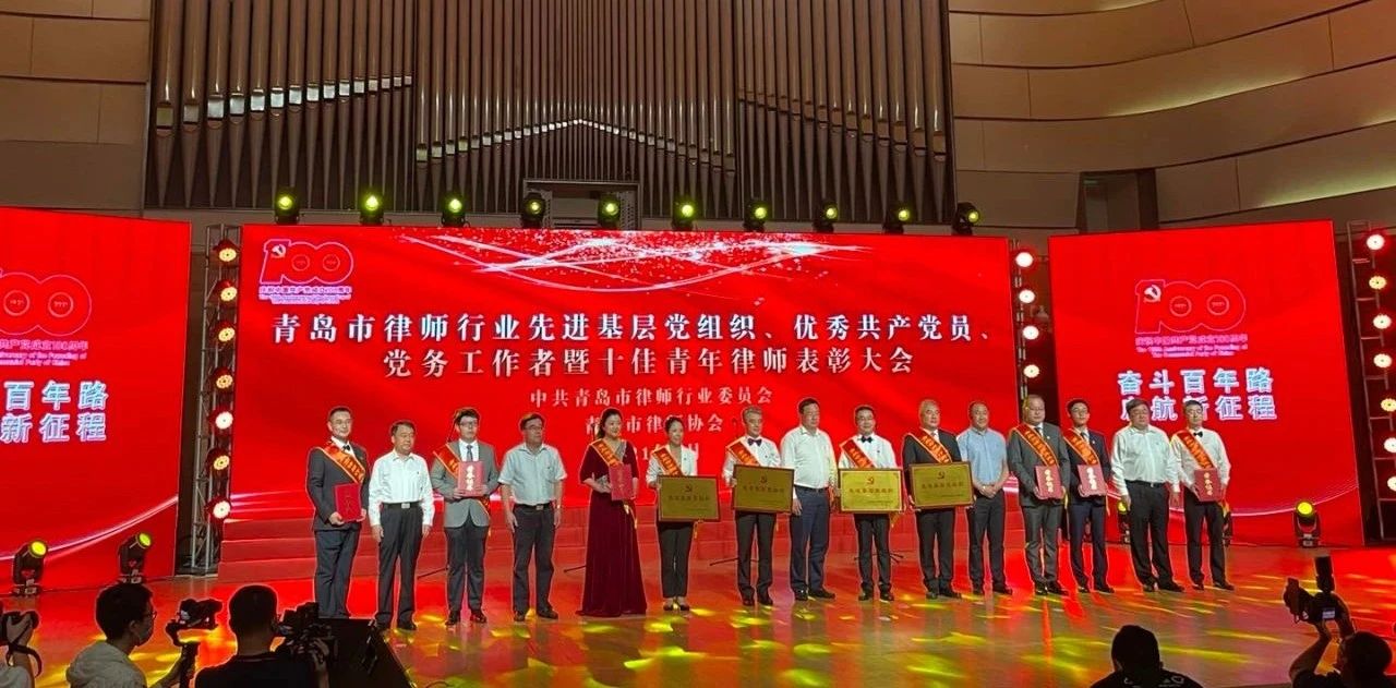 汇演开始前,青岛市律师行业党委举行表彰会,对2021年度先进基层党组织、优秀共产党员、优秀党务工作者以及“青岛市十佳青年律师”“青岛市优秀青年律师”进行了表彰。颐衡所党支部被评为“青岛市优秀党支部”,朱孟科律师荣获“2021年度青岛市律师行业优秀共产党员”称号,郝红艳律师荣获“青岛市优秀青年律师”称号。
