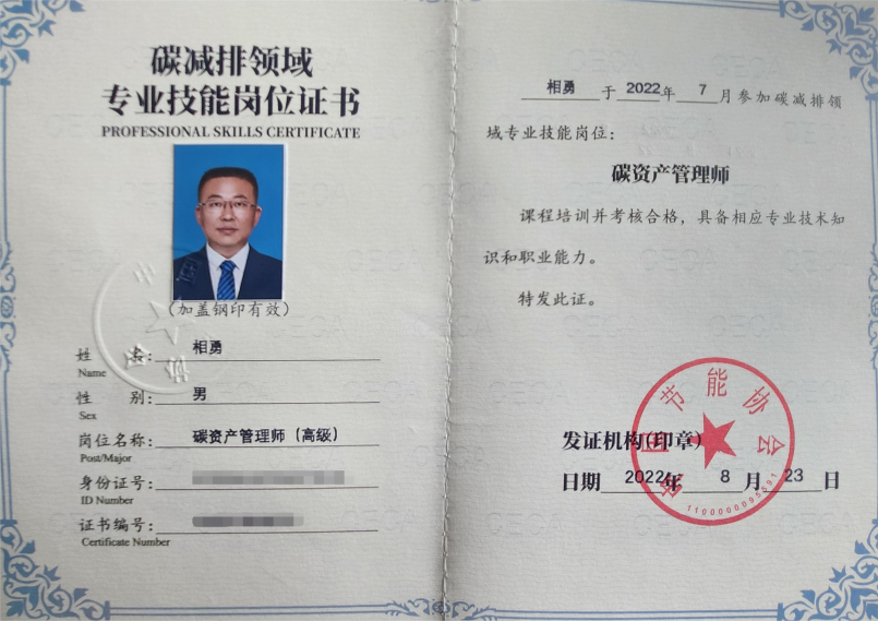 山东颐衡律师事务所合伙人、副主任相勇律师参加中国节能协会(EMCA)组织的碳减排领域专业技能岗位课程培训并考核合格,取得“碳资产管理师(高级)”专业资格并获得中国节能协会颁发的证书。