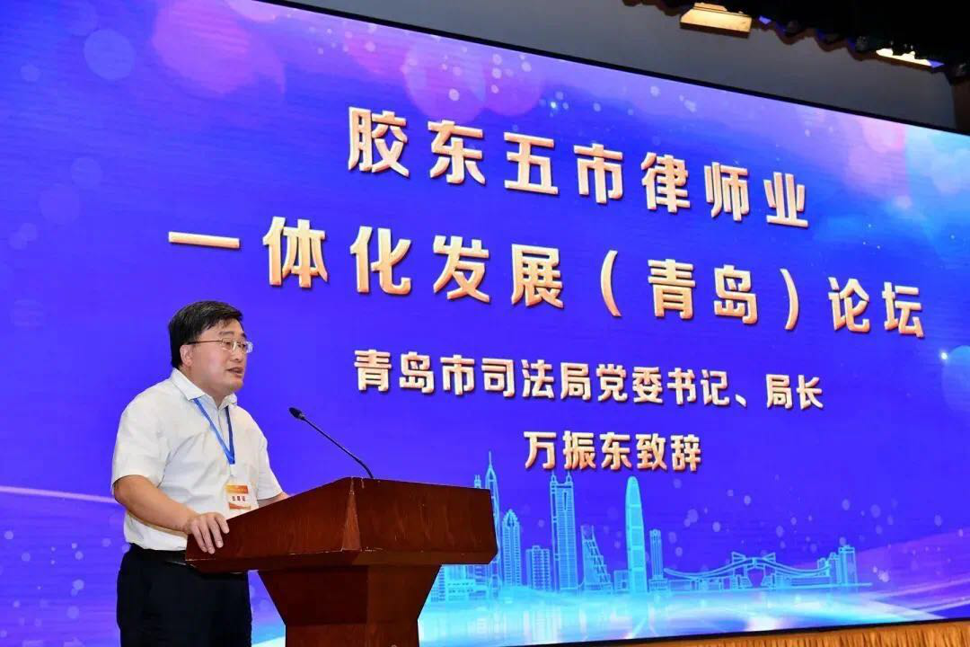 万振东局长在致辞中指出,法治一体化建设是胶东经济圈一体化加快发展的重要组成部分,而律师行业将为之提供强有力的支撑。希望在山东省律师协会的指导下,胶东各市律师行业积极行动起来,推动五市法治工作迈向更宽领域、更高层次,此次论坛汇聚了胶东五市律师界优秀代表,将集中展示五市律师业发展取得的丰硕成果和有益经验,共同探讨在胶东经济圈一体化发展背景下,拓展律师业务与提升律师能力的有效举措,必将有力推进胶东五市乃至全省律师业的理论与实践创新,促进律师业持续健康发展。他希望五市律师行业本着“优势互补、资源共享、协同发展、共同提升”的原则,坚持以全局眼光谋划战略合作,深入开展业务学习交流,推动法律人才资源共享,共同维护律师合法权益,不断探索合作模式,创新合作内容,拓展合作领域,促进五市律师业共同繁荣发展。