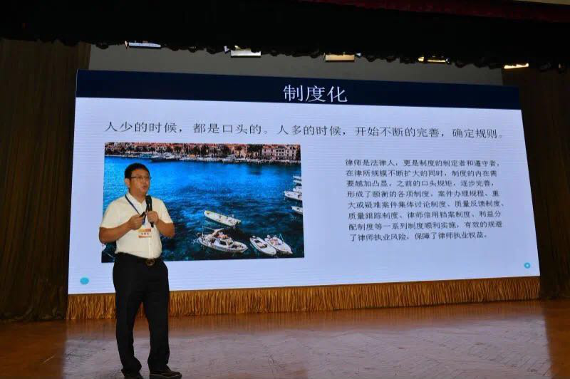 山东颐衡律师事务所党支部书记、主任赵纯永在会议上发表了题为《化危机为机遇,从优秀到卓越——颐衡速度之管理经验分享》的讲话,介绍了山东颐衡律师事务所创造让业内惊叹的“颐衡速度”的有关经验,重点分享了规模化、专业化、制度化、品牌化四化建设齐头并进的管理举措和党建、公益、涉外三驾马车并驾齐驱的发展理念。以及人才储备与品牌打造双管齐下的建设方向,并分享了山东颐衡律师事务所的发展前景,也希望能借此次机会与与会嘉宾共同发展,促进五市律师业共同繁荣。