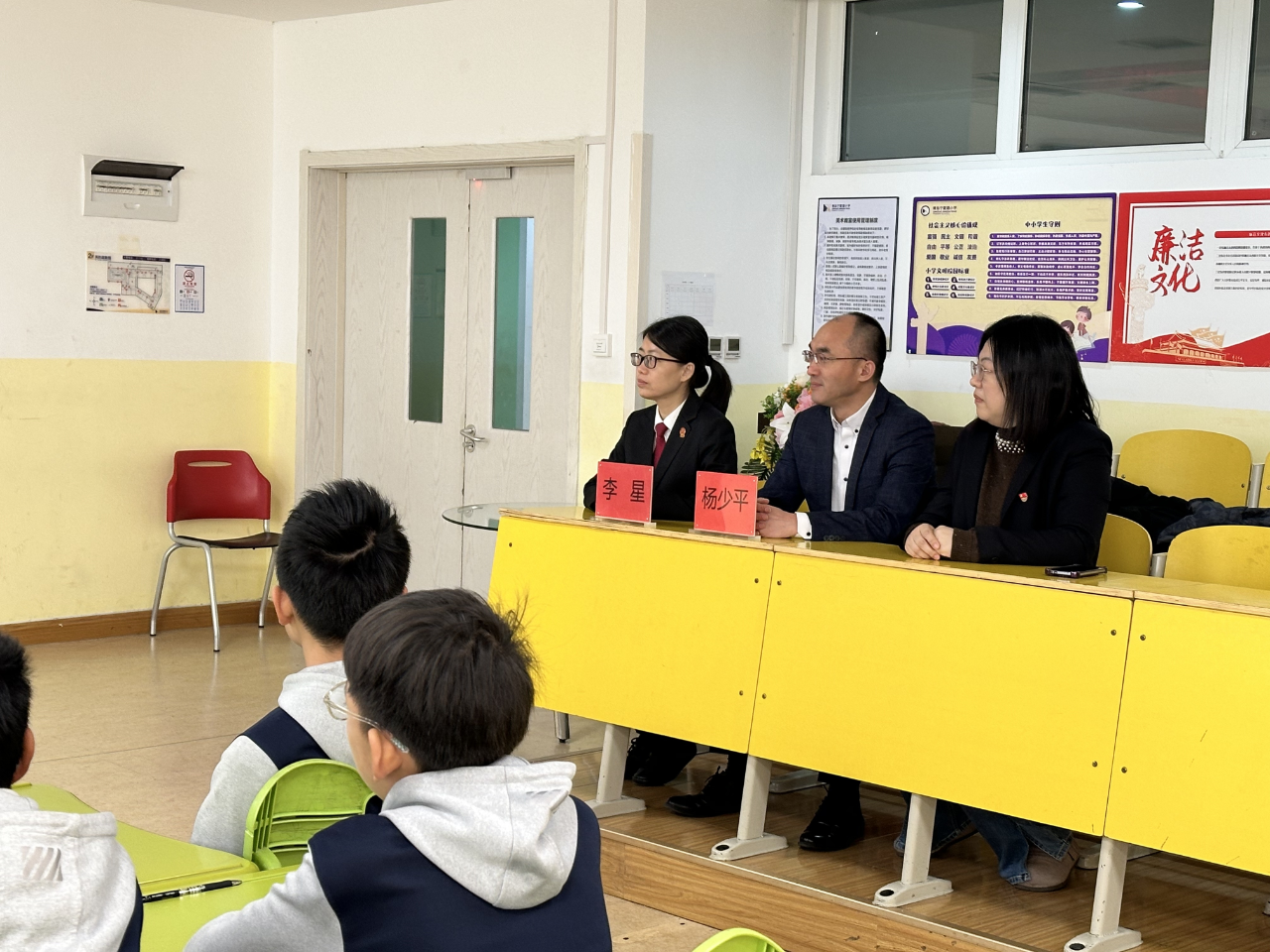 为进一步厚植青少年的法治观念,筑牢校园的法治防线,12月16日上午,青岛宁夏路小学特别邀请青岛市市南区人民法院少审庭的李星法官和青岛市未成年人权益保护研究会理事、山东颐衡律师事务所合伙人杨少平律师走进校园,为六年级二班的同学们带来了一堂内容丰富、干货满满的法治启蒙课。