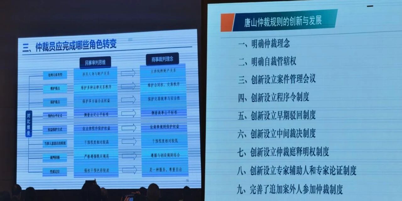 作为河北省内连续多年收案标的额排名第一的权威仲裁机构,唐仲在仲裁员聘任环节始终坚持高标准、严要求,对候选人的专业能力、从业履历、道德修养及政治素养进行全面严苛审核。为助力仲裁员高效履职,本次大会特设2026年度仲裁业务培训环节。郁红祥主任和赵国来副主任分别讲解“仲裁法修订背景下仲裁员能力塑造与职业发展”以及“唐仲新版仲裁规则的创新与发展”,明确了唐仲对仲裁员的要求,为仲裁员在新规则框架下高效履职提供了清晰指引。培训内容紧密结合当前仲裁实践中的热点难点问题,既有对法律条文的深度解读,也有对典型案例的细致剖析,为后续高质量开展仲裁工作奠定基础。