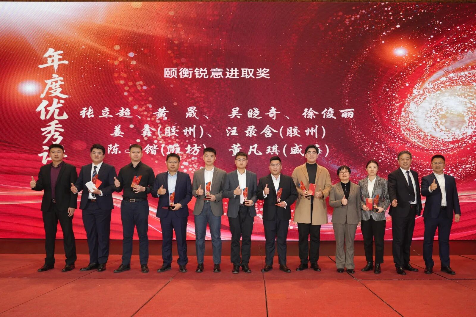 锐意进取奖:张立超、黄晟、吴晓奇、徐俊丽、姜鑫(胶州)、汪录含(胶州)、陈文锴(潍坊)、董凡琪(威海)