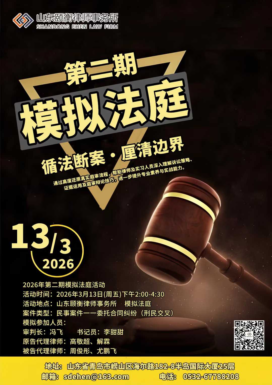 3月13日,山东颐衡律师事务所开展主题为“循法断案·厘清边界"的“3·15”视角下非法请托委托合同纠纷模拟法庭实战活动。