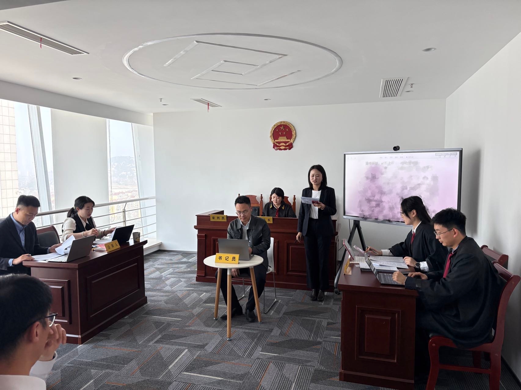 律所律师根据案件实际需要,进行庭前准备。庭审阶段按照相应流程,进行关键证据与陈述的呈现,审判长对争议焦点进行归纳,公诉人和辩护律师进行了激烈的辩论。最终进行庭后复盘,由评委陈相敏律师进行相关发问,戚威主任进行点评,归纳实务经验。