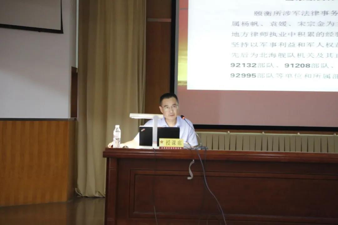 为深入贯彻落实颐衡拥军精神,聚焦广大部队官兵关注的热点问题,9月15日下午2点,山东颐衡律师事务所合伙人朱孟科律师、退役军人白永明律师、军人家属杨帆律师、宋宗金律师来到海军某部队,对该部队官兵普遍关注的法律问题进行讲解,现场反应热烈。机关基层官兵参与此次讲座。会后与该部队首长就依法治军进行了深入交流。