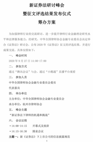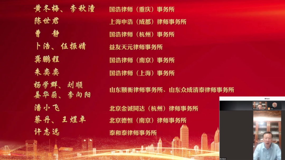 由全国律协金融委员会主办、杭州律师协会协办的《新证券法研讨峰会》于2020年9月26日面向全国律师、法律工作者通过网络召开。山东颐衡律师事务所杨学群律师受邀就《新冠病毒疫情对国际资本市场法律风险与责任的思考》专题向大会做汇报,同时我所律师撰写的《律师与律师事务所在证券业务中的执业风险防范机制研究》获得本次新证券法研讨峰会论文三等奖。
