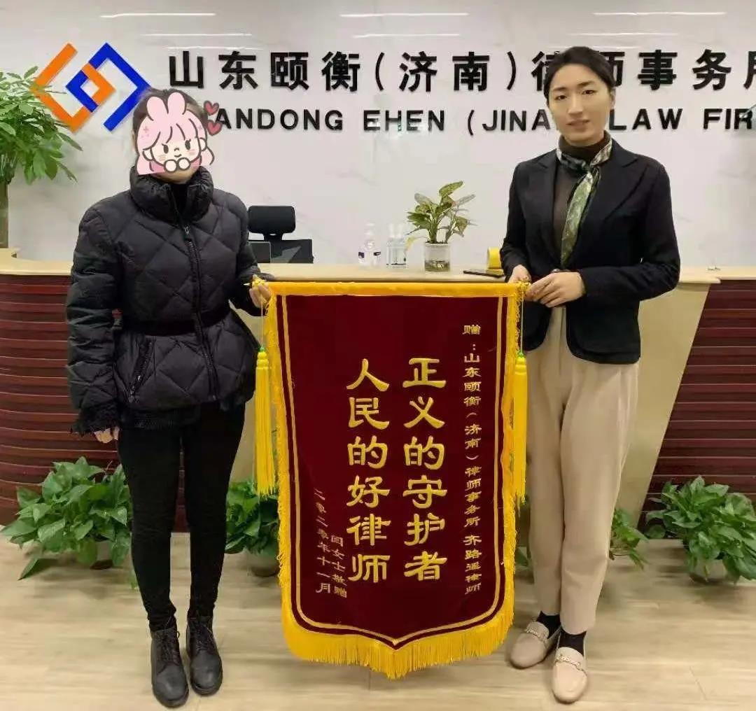 2020年12月1日,济南的天气阴冷冷的,当事人闫女士却早早来到了律所,热情的为我所齐路遥律师送来一面锦旗,“正义的守护者,人民的好律师”,短短十余字,承载了闫女士由衷的感谢。